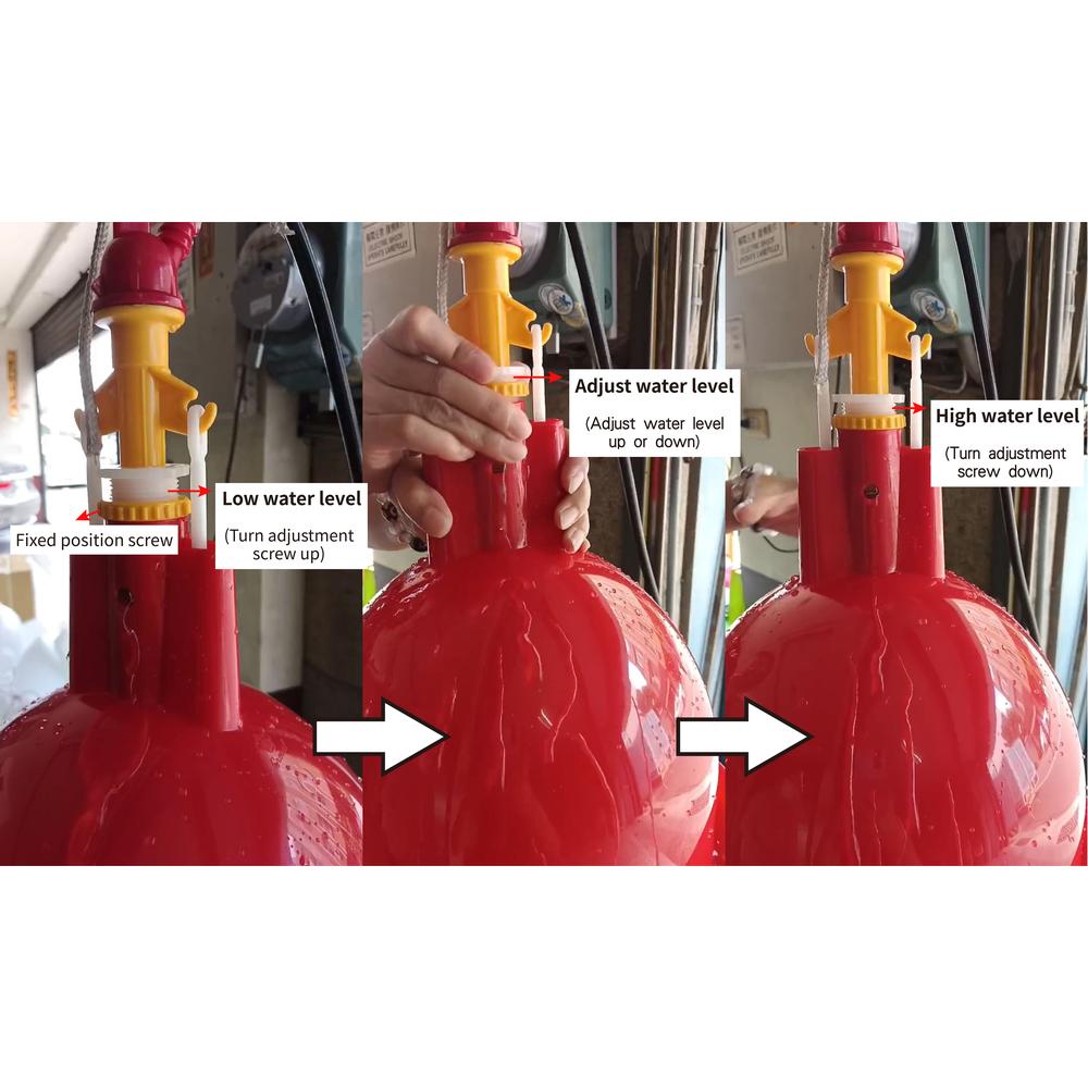 Big suspension waterer working on the ballasting principle. As water is taken, the load lightens and the valve system lets water in again. This waterer is ideal for up to 300 chicks, or 150 layers, or as a home-breeder waterer. 10mm water connection. Adjustable water level. Dish diameter is 37cm and height is 55cm overall. Working pressure from 0.2 to 0.5 bar (3 to 8 psi).